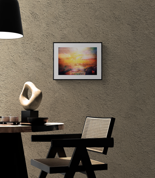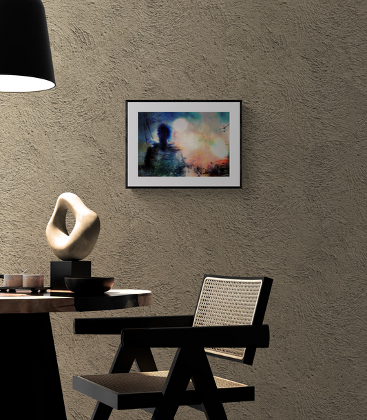 アッシュ木製黒フレーム+白マットのシンプルな額装で、作品の色と紙肌を際立たせます。